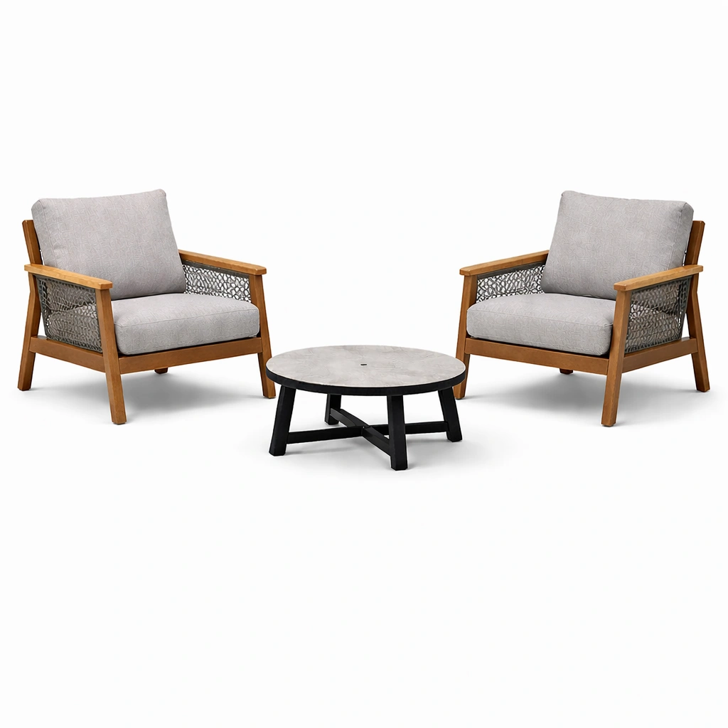 Conjunto de jardín de Sillones de Madera y Mesa de Cemento para Exterior